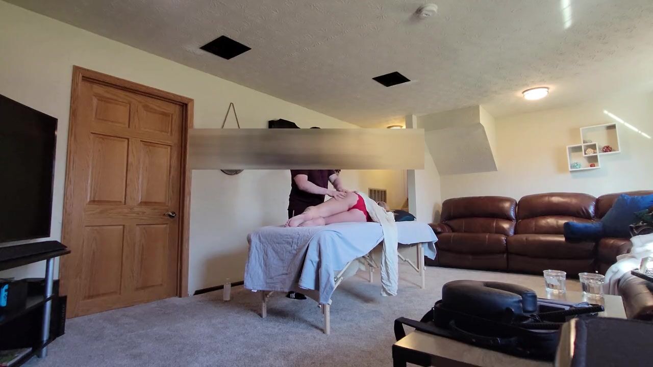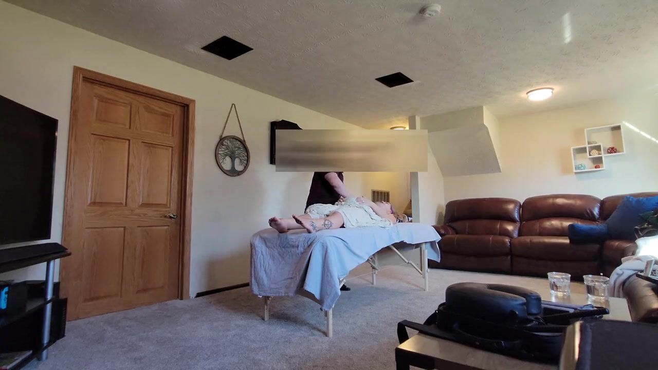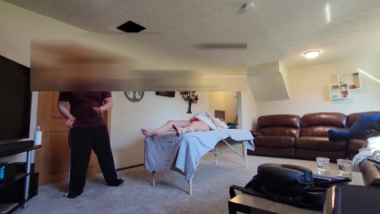 . Ehefrau fickt Ehemann, indem sie eine versteckte Kamera aufstellt, um ihren Massagetherapeuten zu verführen, den sie fickt und gesichtsbehandelt wird
