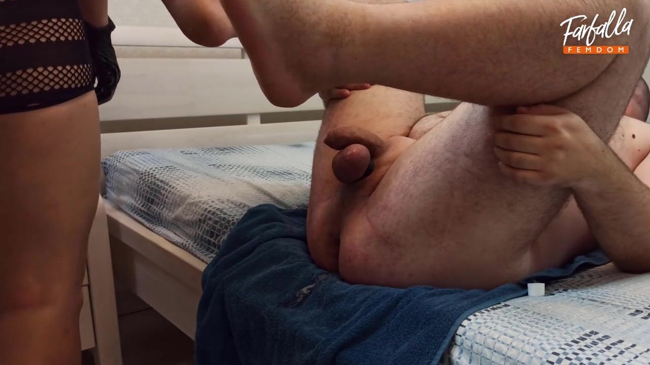 . Une MILF sexy qui strappe son amant. Pédigouillage. Femdom. Femme de ménage sexy, fisting son amant.
