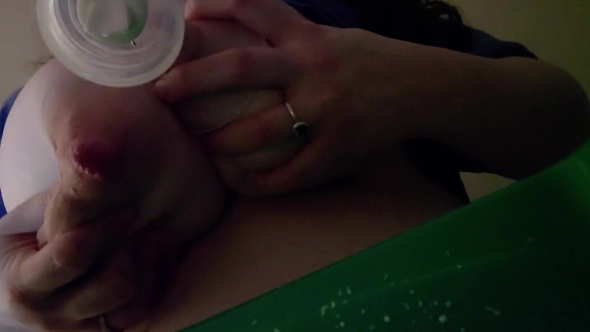 END OF 24HR MILK CHALLENGE POST PUMP AFTERMATH SUCK AND SQUIRT BBW MILF TITSとミルクをボウルに入れる。