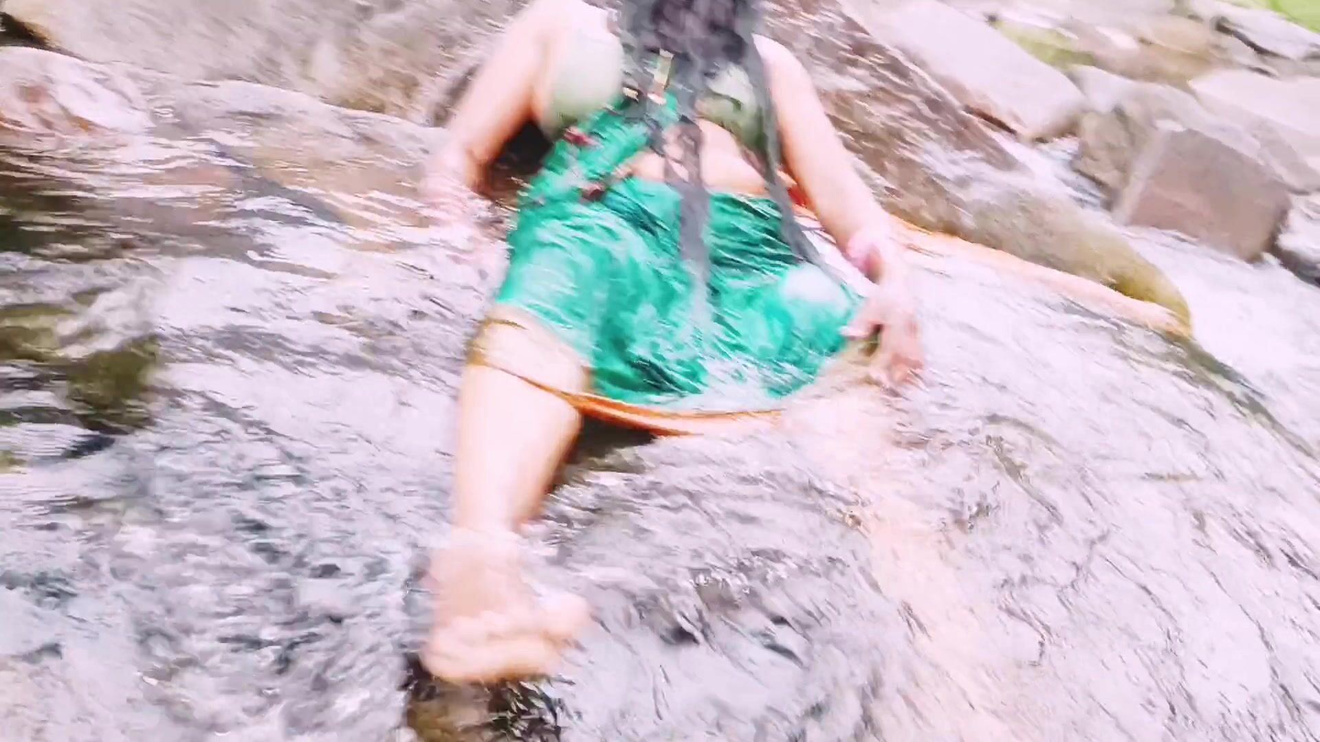 TELUGU SEXY SILK AUNTY OUTDOOR WATERFALL BATHING, TELUGU DIRTY TALKS.