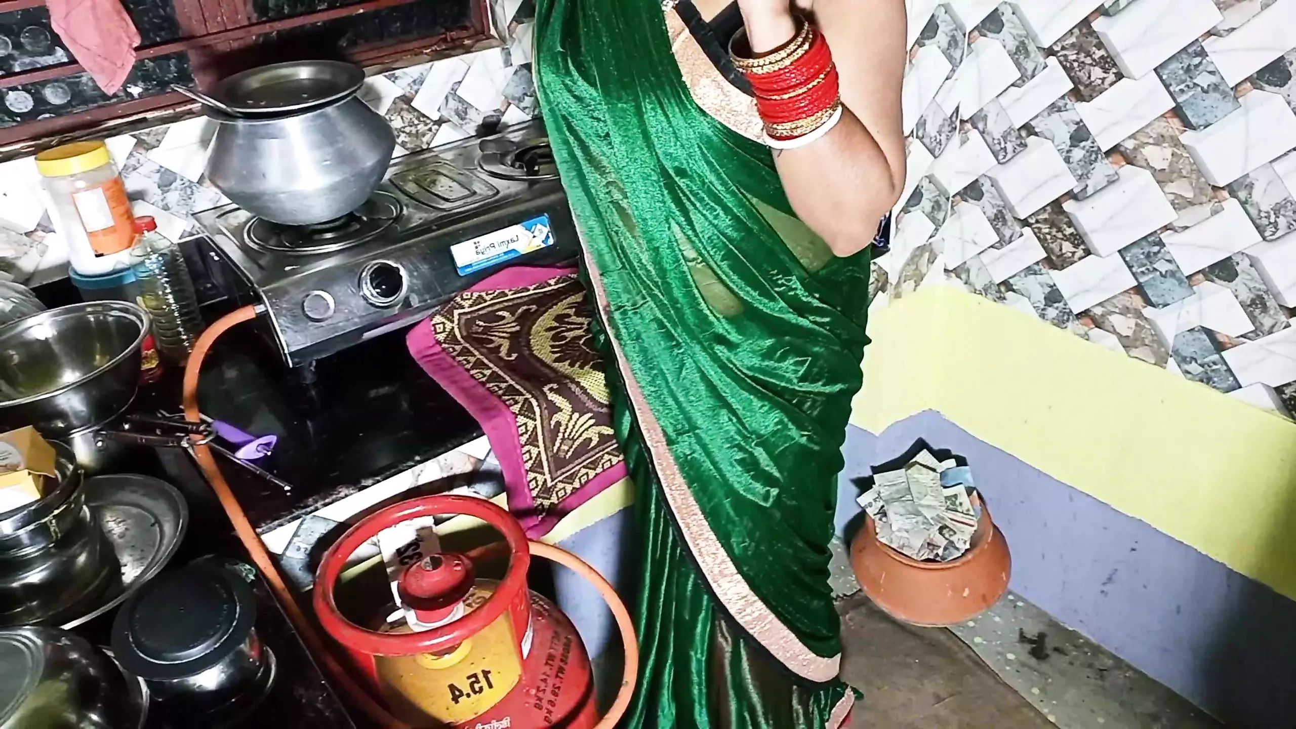 . Забитая Бхабхиджи работала на кухне, когда никого не было в доме! настоящим голосом хинди