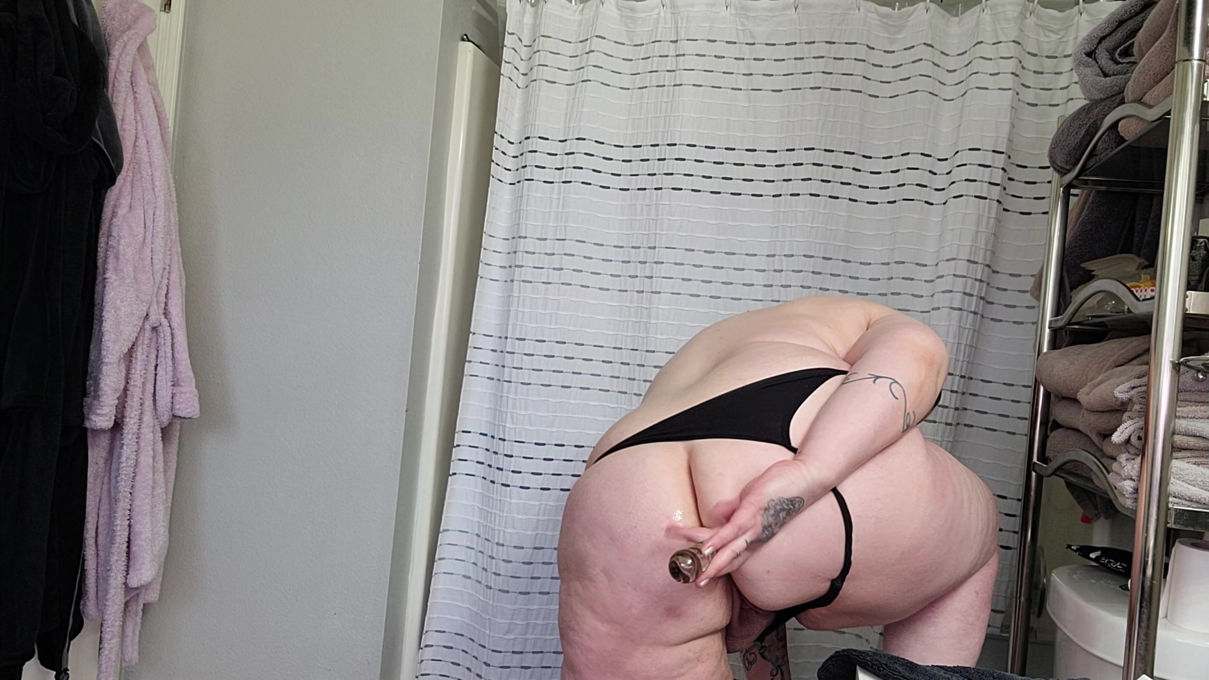 . Banyodayım ve boşalmam gerekiyor, bu yüzden kıç oyuncağımı buldum, şimdi inme zamanı. Umarım kimse beni burada yakalamaz!